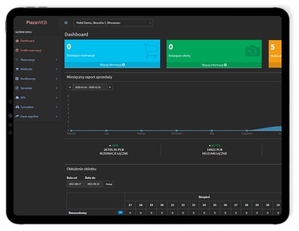 Nowoczesny program do obsługi hotelu, który działa za Ciebie i wspiera twój zespół to nie tylko dedykowana aplikacja. Wypróbuj Plaza WEB, czyli narzędzie pracujące w przeglądarce internetowej. Idealne rozwiązanie dla condohoteli i apartamentów. Zapewnia dozór nad obiektem z każdego miejsca. Pozwala na łączenie wielu obiektów hotelowych w jedną całość.